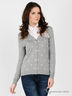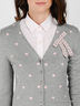 Практичный кардиган из эластичного вискозного трикотажа средней плотности с V-образным вырезом горловины и длинным рукавом. Застежка на пуговицы. Полочка украшена рисунком и пришитым бантиком. Вставка на спинке в виде гипюрового бантика. Шикарный вариант на каждый день.