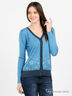 Комфортный кардиган из эластичного трикотажа средней плотности. V-образный вырез горловины, длинный рукав и низ изделия на манжете. Застежка на пуговицы, декорирован принтом на полочке. Великолепный вариант для тех, кто ценит комфорт и качество.