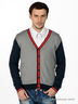 Детали: V-образный вырез, длинный рукав, застежка на пуговицы, контрастная планка-застежка