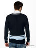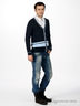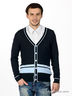 Детали: V-образный вырез, длинный рукав, застежка на пуговицы, контрастные полосы