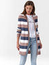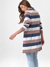 Особенности: Вязаный кардиган прямого силуэта выполнен из полушерстяной пряжи в контрастную полоску. Кардиган оформлен контрастной обтачкой по переду. Рукава оформлены резинкой.