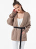 Особенности: Кардиган выполнен из фактурной вязки, смесовой пряжи, дополнен съемным поясом.