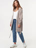 Особенности: Мягкий вязаный кардиган выполнен из объемной фактурной меланжированной пряжи. Низ кардигана, рукава оформлены резинкой в рубчик.
