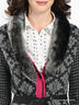 Стильный и оригинальный кардиган из мягкого и теплого материала с добавлением ангорской шерсти. Декорирован съемным меховым воротником. Застегивается на пуговицы. Длинные рукава с манжетами. Талия подчеркнута поясом с помпонами.