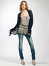 Кардиган из полупрозрачного трикотажа. На уровне груди широкая трикотажная резинка. Длинные рукава.
