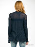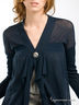 Кардиган из полупрозрачного трикотажа. На уровне груди широкая трикотажная резинка. Длинные рукава.