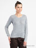 Элегантный кардиган с фигурным вырезом горловины и застежкой на пуговицы. Манжеты рукавов и низ изделия окантованы в рубчик. По бокам - аккуратные накладные карманы. Прекрасный повседневный вариант.