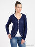 Великолепный кардиган оригинального кроя имеет застежки на пуговицы. Манжеты рукавов окантованы в рубчик. Отличный вариант на каждый день.