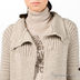 Изделие выполнено оригинальной вязкой: основная часть спинки, полочки и рукавов - гладкая вязка; область около воротника, верхняя часть рукава и низ изделия - широкая вязка резинкой. Кардиган не имеет застежки, декоративные пуговки дополняют воротник.