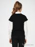 Теплый вязаный кардиган черного цвета. Круглая горловина. Заниженные проймы. Застегивается спереди на оригинальные пуговицы с золотыми бантиками.