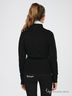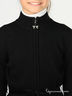 Теплый элегантный кардиган черного цвета. Воротник стойка. Застегивается на молнию. Манжеты декорированы крупными стразами. Талия подчеркнута стильным бархатным поясом.