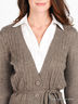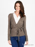 Детали: длинный рукав; высокая манжета и низ изделия в виде трикотажной резинки в рубчик; застегивается на пуговицы; в шлевки продет тонкий поясок