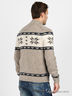 Модный кардиган с воротом стойкой и длинным рукавом выполнен из шерстяного трикотажа. Изделие застегивается на пуговицы. Кардиган украшен рисунком. Отличный вариант для тех, кто любит комфорт и качество.