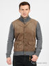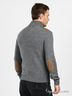 Модный кардиган с воротом стойкой и длинным рукавом выполнен из шерстяного трикотажа. Изделие застегивается на пуговицы. Вставки на полочке и накладки на локтях из искусственной кожи. Два передних кармана. Шикарный вариант на каждый день.