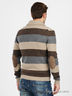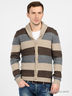 Стильный кардиган с отложным воротом и длинным рукавом выполнен из шерстяного трикотажа. Изделие застегивается на пуговицы. Кардиган украшен контрастными полосами. Накладки на локтях. Отличный вариант для тех, кто любит комфорт и качество.