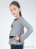 Вязаный кардиган для девочки с отрезной баской. Он не теряет строгости, необходимой для школы, но выгодно отличается от базовых решений новизной и элегантностью. Спинка украшена маленьким декоративным элементом - буквой G, отделанной стразами.