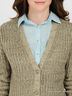 Классический кардиган с длинными рукавами и v-образным вырезом горловины. Прямого силуэта. Выполнен из мягкого вязаного материала с люрексом. Застегивается на пуговицы. Спереди 2 прорезных кармана. Низ и манжеты - резинка в широкий рубчик. Отличный вариант для тех, кто любит комфорт и качество.