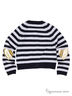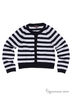 Кардиган в полоску. Модель с длинным рукавом и округлым вырезом горловины. Застежка на пуговицы спереди.