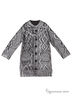 Очаровательный кардиган с длинными рукавами. Спереди - удобная функциональная застежка на пуговицы по всей длине. Низ изделия и манжеты рукавов окантованы в рубчик. Модель украшена фактурным вязаным узором, по бокам накладные карманы, ткань с блестящим металлическим напылением. Смотрится очень стильно.