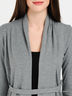 Повседневный кардиган выполнен из мягкого, приятного на ощупь джерси. Прямые, длинные рукава. Полочка дополнена оригинальной драпировкой. На спинке расположен хлястик, с помощью которого можно регулировать ширину изделия.