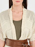 Стильный кардиган оригинальной ажурной вязки с коротким рукавом. Станет отличным дополнением к повседневным нарядам.