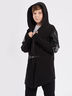 Кардиган с капюшоном прямого кроя. Модель с длинным рукавом, застежка на крючок.