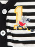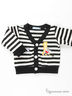 Кардиган с длинным рукавом и V-образным вырезом горловины застегивается на пуговицы. Планка, манжеты и низ изделия - трикотажные резинки. Полочка украшена нашивками и вышивкой.
