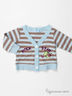 Кардиган с длинным рукавом и V-образным вырезом горловины застегивается на пуговицы. Планка, манжеты и низ изделия - трикотажные резинки. Полочка украшена нашивками.