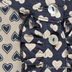 Детали: эффект двойки, небольшой ворот-стойка, застежка на перламутровые пуговицы, планка-застежка декорирована оборками, манжеты на пуговице
