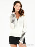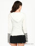 Детали: капюшон, длинный рукав, застежка на молнию, два передних кармана, манжеты с контрастными полосами и отверстием под большой палец, полочка декорирована вышивкой и стразами