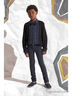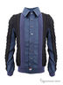 Оригинальный кардиган из вязаного трикотажа выполнен в форме рубашки, дополнен вставками из хлопковой ткани. Такой кардиган украсит ваш гардероб и будет неотъемлем в повседневной носке и в праздники.