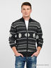 Стильный кардиган с длинным рукавом и воротом-стойкой застегивается на молнию. Изделие выполнено из плотного полушерстяного трикотажа и декорировано узором. Два передних кармана на молнии. Отлично сочетается с различными по фасону и фактуре вещами.