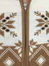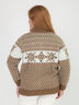 Кардиган с красивым жаккардовым узором. Высокий воротник в рубчик, застежка на молнию. Края в рубчик. Длина ок.70 см. Параметры фотомодели: рост 172 см, российский размер 48.