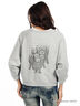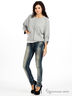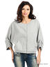 Детали: укороченный рукав "летучая мышь", округлый вырез горловины, застежка на скрытые кнопки, два передних кармана, нижняя часть рукава присборена по внешнему шву, декоративная аппликация со стразами на спинке