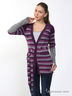 Кардиган с актуальным рисунком в полоску застежкой на пуговицы. Модель дополнена поясом такой же расцветки.