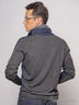 Модный мужской кардиган из гладкого трикотажа с добавлением шерсти. Ворот-стойка. Двойная застежка: на молнию и на пуговицы. Длинные рукава с манжетами. Спинка и часть рукавов выполнены из материала другого цвета.