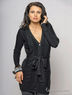 Элегантный кардиган из качественного полухлопкового трикотажа в широкую вертикальную полосу. V-образный вырез горловины. Застежка на пуговицы. Длинные облегающие рукава с манжетами. На полочках два прорезных кармана. Талия подчеркивается поясом.