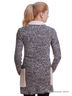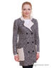 Длинный кардиган с английским воротником и 2 большими карманами. Двубортная застежка на пуговицы. Воротник, лацканы, карманы и края рукавов контрастного цвета.