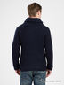Кардиган с длинными рукавами и воротником-стойка. Модель с центральной застежкой на пуговицы выполнена в интересном цветовом сочетании. Эластичные манжеты и нижний край окантованы в рубчик.
