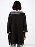 Детали: широкая круглая горловина, застегивается на крючки спереди, короткие цельнокройные рукава, ассиметричный подол