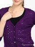 Классический вязаный кардиган прямого кроя. Застегивается на пуговицы. Округлый вырез горловины. Длинный прямой рукав. Кардиган декорирован бусинами и пайетками.