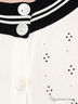 Оригинальный кардиган прямого силуэта. Выполнен из приятного на ощупь материала. Округлый вырез горловины. Короткие рукава-реглан. Спереди застегивается на пуговицы. Модель украшена черными стразами и бантиками. Прекрасно сочетается с любыми по стилю и фасону вещами!