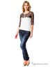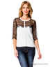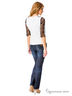 Очаровательный кардиган с рукавами 3/4 и округлым вырезом горловины. Модель облегающего фигуру кроя дополнена вставками из кружева. Спереди- застежка на пуговицы. Отличный вариант на каждый день.