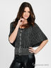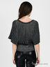 Оригинальный кардиган прилегающего силуэта выполнен из вискозного кашкорсе с люрексом. Округлый вырез горловины, застежка на пуговицы, широкий, короткий цельнокроеный рукав, низ изделия на высокой манжете из рибаны. Прекрасно сочетается с нарядом для вечернего отдыха.