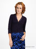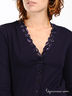 Очаровательный кардиган из легкого, приятного на ощупь трикотажа. V-образная горловина декорирована кружевом со стразами. Застегивается на пуговицы. Рукава 3/4.
