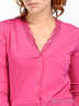 Очаровательный кардиган из легкого, приятного на ощупь трикотажа. V-образная горловина декорирована кружевом со стразами. Застегивается на пуговицы. Рукава 3/4.