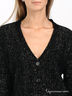 Теплый, приятный на ощупь кардиган с золотым люрексом. V-образный вырез. Застегивается на пуговицы. Длинные рукава.