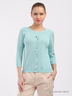 Очаровательный кардиган с рукавами 3/4 и округлым вырезом горловины. Модель дополнена спереди застежкой на пуговицы. Изделие выполнено в однотонной расцветке. Отличный вариант для базового гардероба.