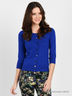 Отличный женский кардиган из полушерстяного трикотажа средней плотности с круглым вырезом и застежкой на пуговицы. Манжеты рукава 3/4 и низ изделия в виде трикотажной резинки. Идеальный вариант для тех, кто ценит комфорт и качество.