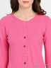 Отличный женский кардиган из полушерстяного трикотажа средней плотности с круглым вырезом и застежкой на пуговицы. Манжеты рукава 3/4 и низ изделия в виде трикотажной резинки. Идеальный вариант для тех, кто ценит комфорт и качество.